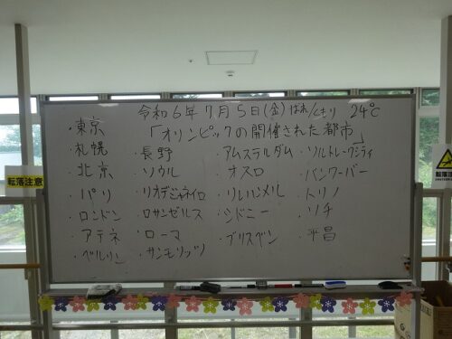 さわやか室蘭弐番館 2階 5日活力朝礼♪ 2024-07-07 2024-07-07 皆様こんにちは♪ 5日の様子をお届けします 日付の確認後はラジオ体操です しっかり体を動かします 頭の体操はオリンピックの開催地 お答え頂きました 今年は7月26日からパリで開催されます