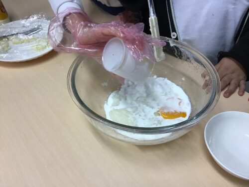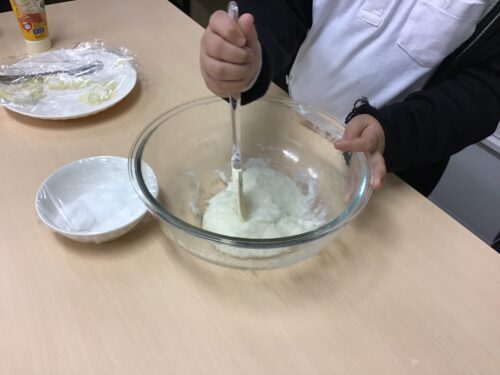 最初に餅を温めて、柔らかくして牛乳バターを入れます。