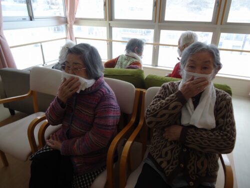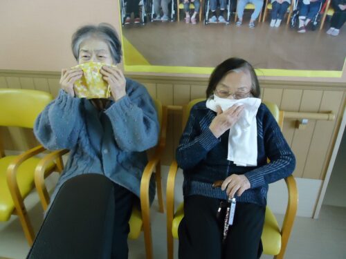 サイレンの音に驚いて、本番さながらの避難をされておりました。