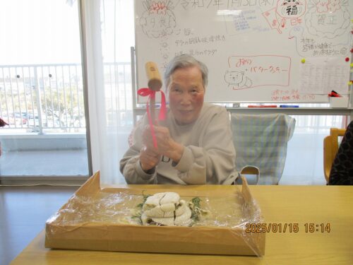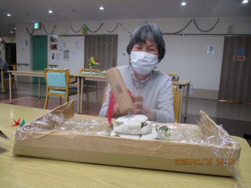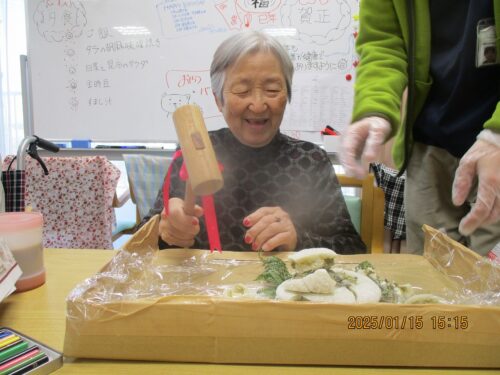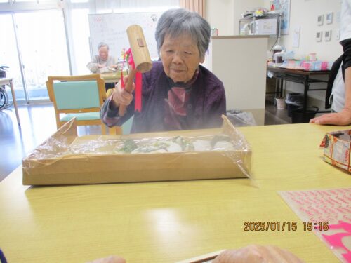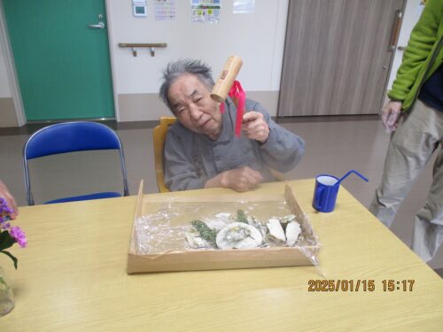 一人ひとり丁寧に鏡餅を叩いておられ、とてもきれいに割ることができました。