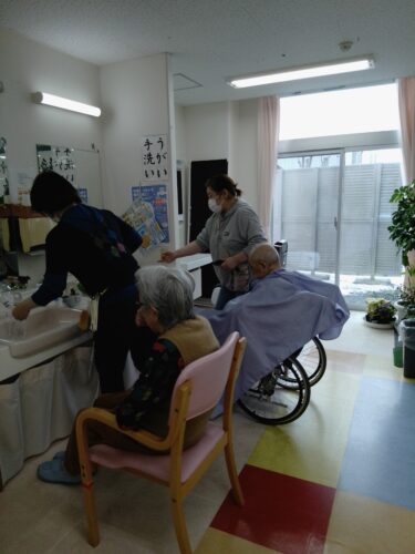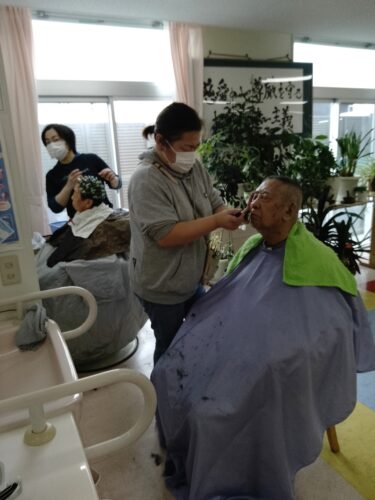 皆さん髪を切ったり、顔を剃ってもらって