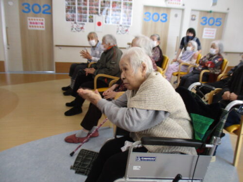 『よさこい』さんによるダンスのパフォーマンス。利用者さんもスタッフも一緒になって鑑賞させていただきました。間近てみるダンスに、利用者さんも大喜びでしたね。