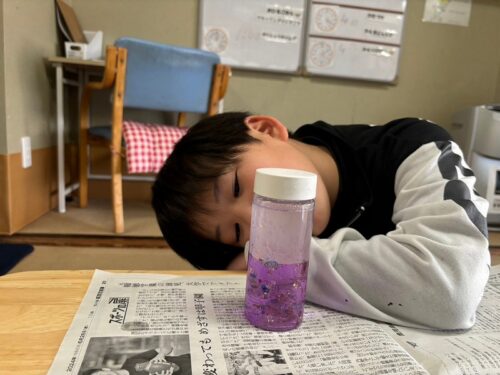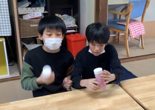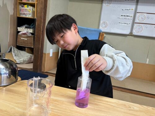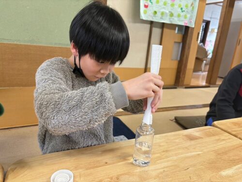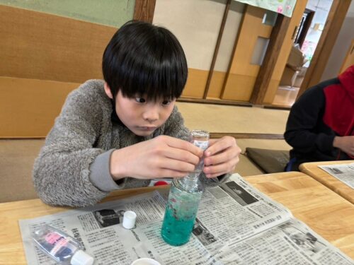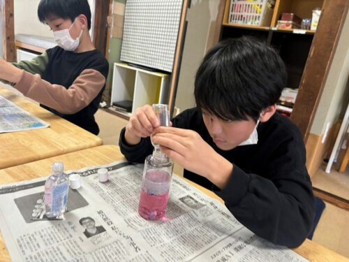 まずは ボトルに 水を半分くらい入れてね🖐️