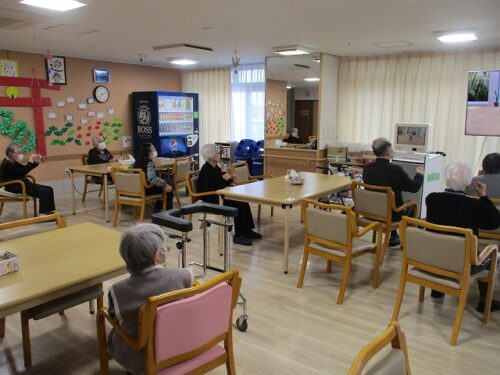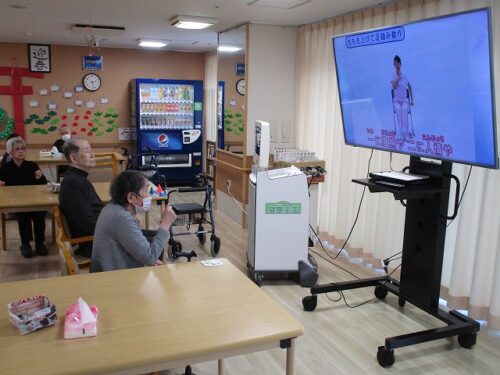 さわやか室蘭弐番館 3階 18日午後の様子♪ 2025-01-21 2025-01-21 皆様こんにちは♪ 18日午後の様子をお届けします カラオケに搭載されている 運動プログラムで身体を動かしました もも上げです スッキリしました(^O^)/