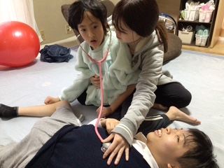 子どもたちは体温計や聴診器などが気になるようで、、、