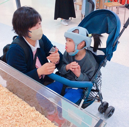 餌をあげてみたり、手に乗せてみたりと優しい表情で触れ合うことができています♪