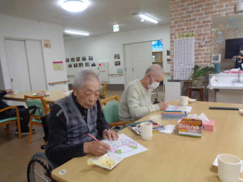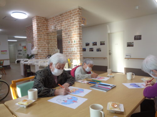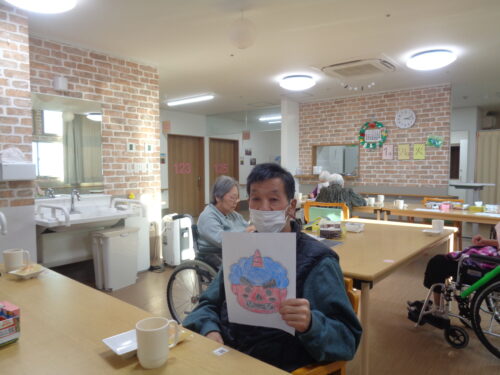 本日、来たる節分に向けて塗り絵をしていただきました😆