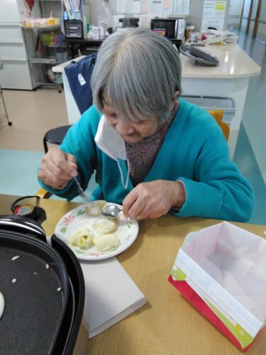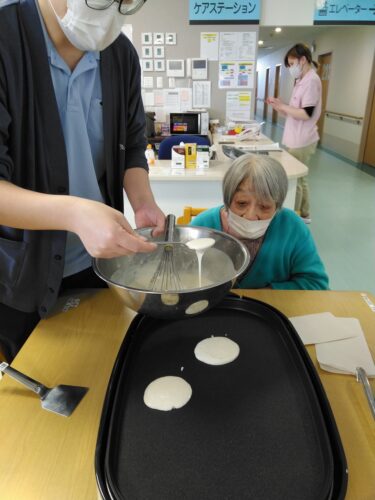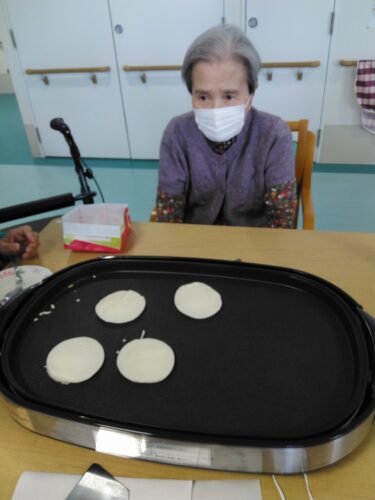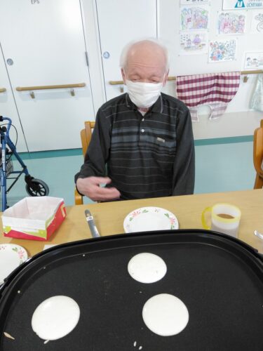 本日は2階にてホットプレートを使っておやつにパンケーキを焼きましたよ👍👍