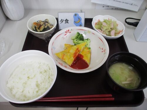 ご飯・スペイン風オムレツ🥚・キャベツ煮浸し