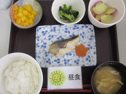 ご飯・鰺の塩焼き・さつま芋のレモン煮