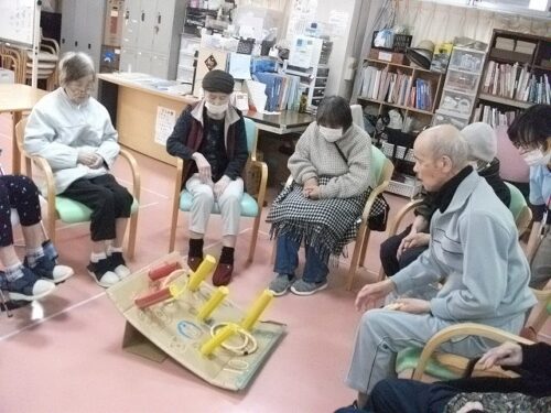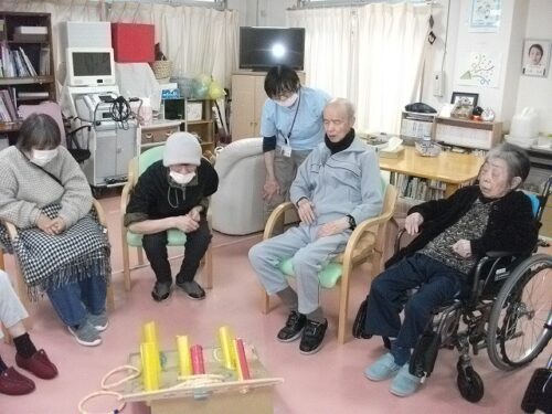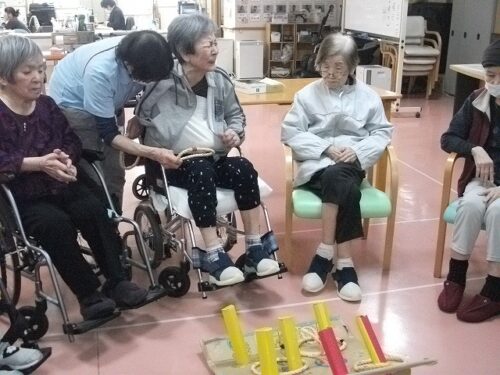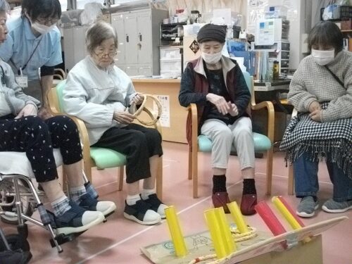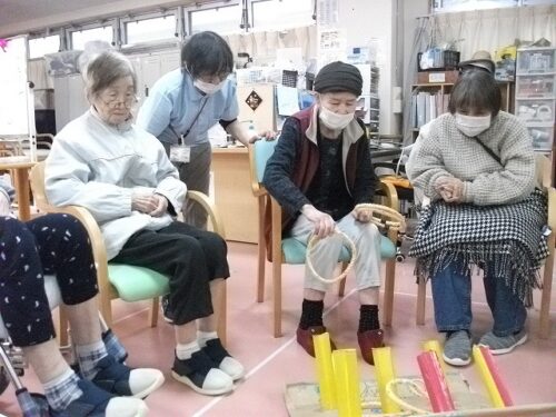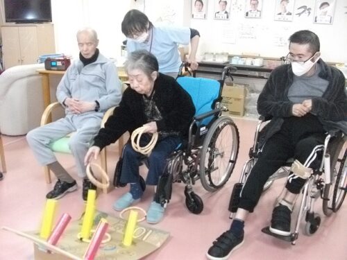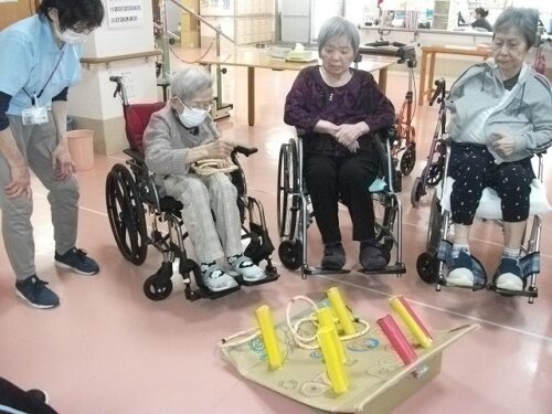 リハビリスタッフお手製の輪投げで