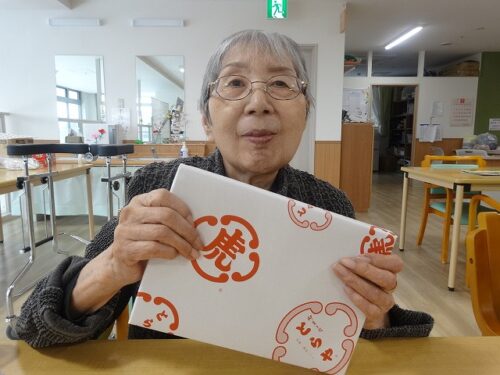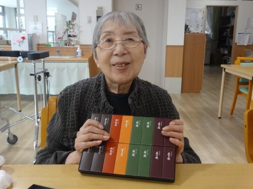 さわやか室蘭弐番館 2階 祝!お誕生日!! 2025-01-24 2025-01-24 皆様こんにちは♪ お誕生日に合わせご家族様から 荷物が届きました🎁 百貨店の包装紙を早速開封されます 包装紙にはリボン🎀が ”あら素敵♡”と ”こちらは重いわね”と 素敵な笑顔です☆ おめでとうございます! 素敵な一年になります様に☆