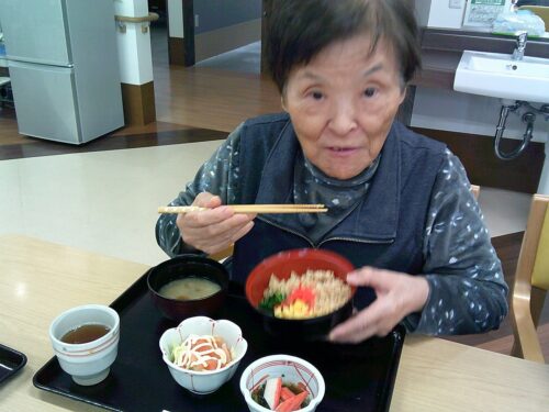 さわやかグループホーム むろらん 今日のお昼ご飯、何かな❓ 2025-01-25 2025-01-25 今日のお昼ご飯は 三食丼 鶏のひき肉を甘辛に味付けし 卵とほうれん草といっしょにご飯にのせました 皆さんに美味しく召し上がって頂けるよう また頑張ってつくります(本日の調理担当より)