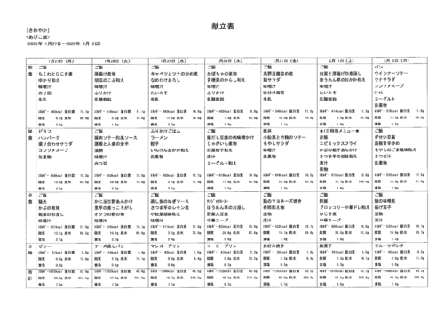 献立表1/27~2/2まで (さわやかあびこ館 千葉県我孫子市介護付き有料老人ホーム)