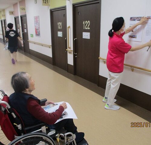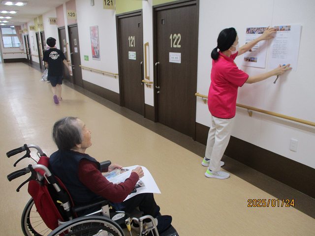 さて、こちらは先日、ご入居者様の監督で張り紙をしている模様です。
