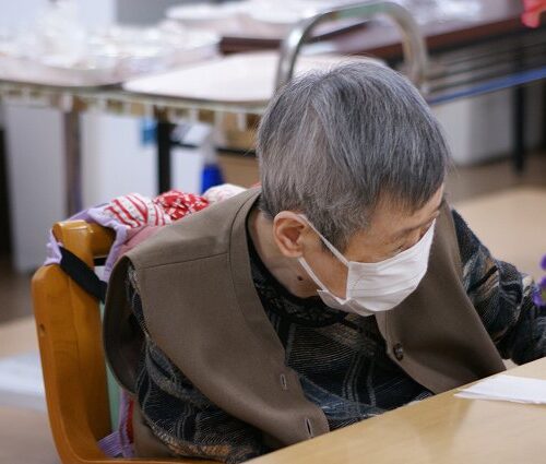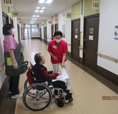 「曲がってる!」「んだんだ、そいでいい!」等と職員の後ろから教えてくれています。「なんだろう?」と出てきた方々の注目を集めておりました。