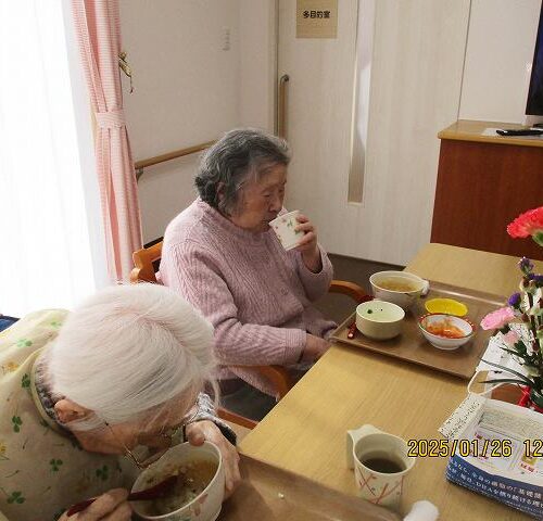 さて、こちらは午前中に演歌歌手のコンサートを見ながら「お茶っこ」をしている皆様です。