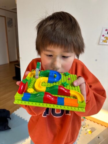 先日、高学年でレゴ遊びが好きだった児童と低学年の児童が一緒に余暇を楽しんでおり
