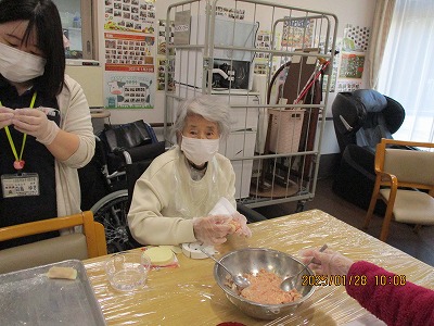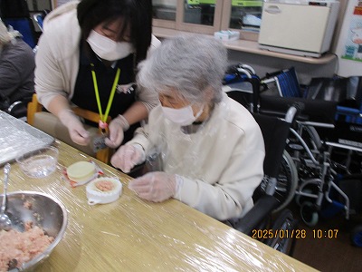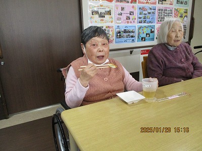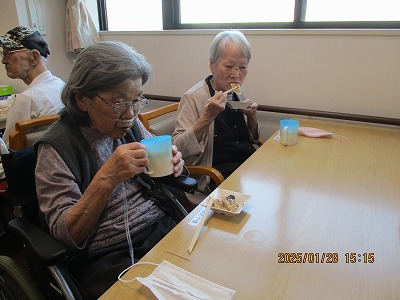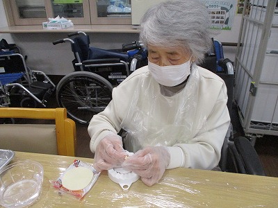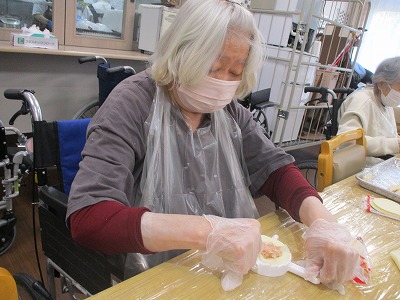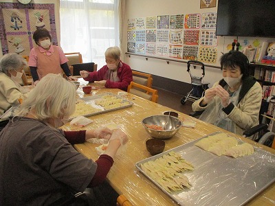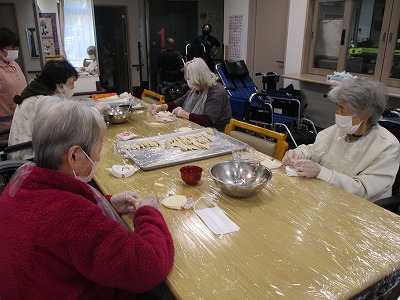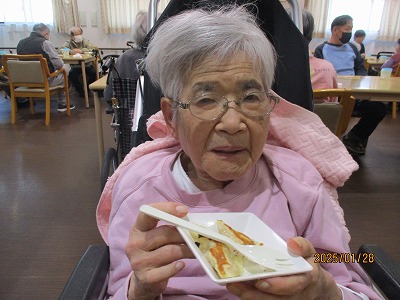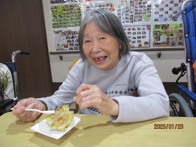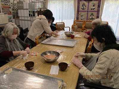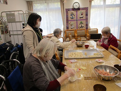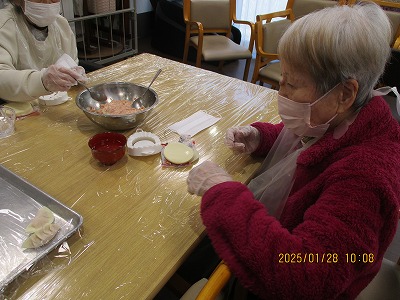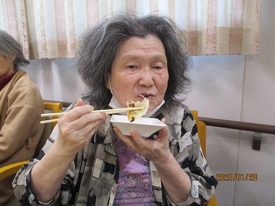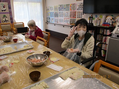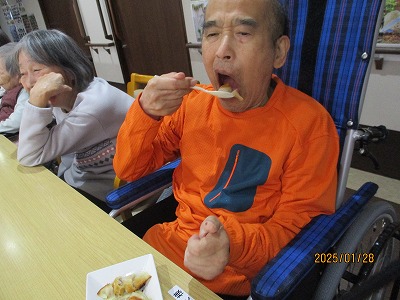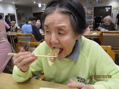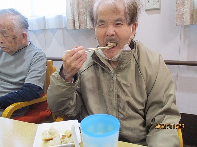 おやつの時間にフロアで焼いて提供させていただき、施設中餃子の匂いでい~っぱい❕❕