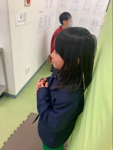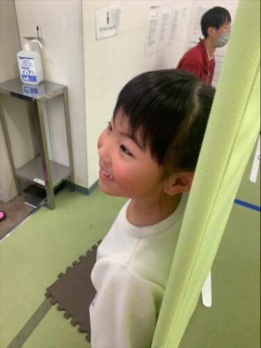 自分の番が来ると、席からパーテーション前のマットに移動し、