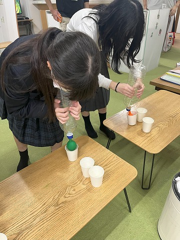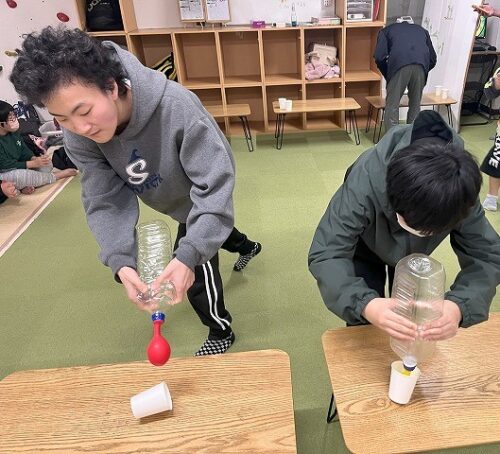 風船が膨らむようにペットボトルを押して空気を入れて…