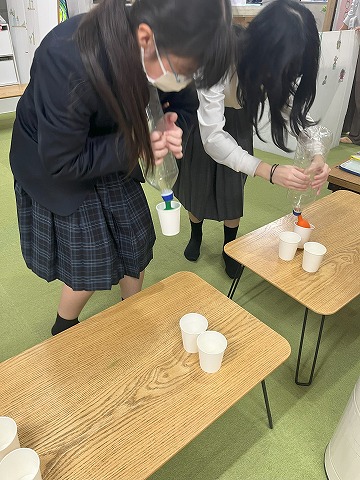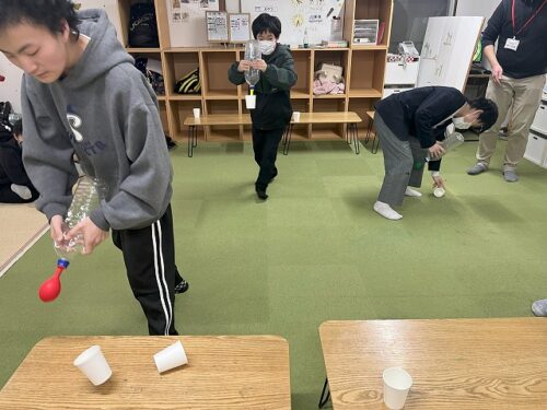 紙コップを持ちあげたら向かい側の机まで運びます💦