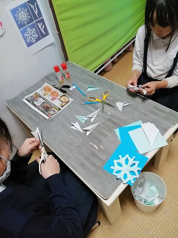1月30日(木)の活動は切り紙で雪の結晶を作りました。