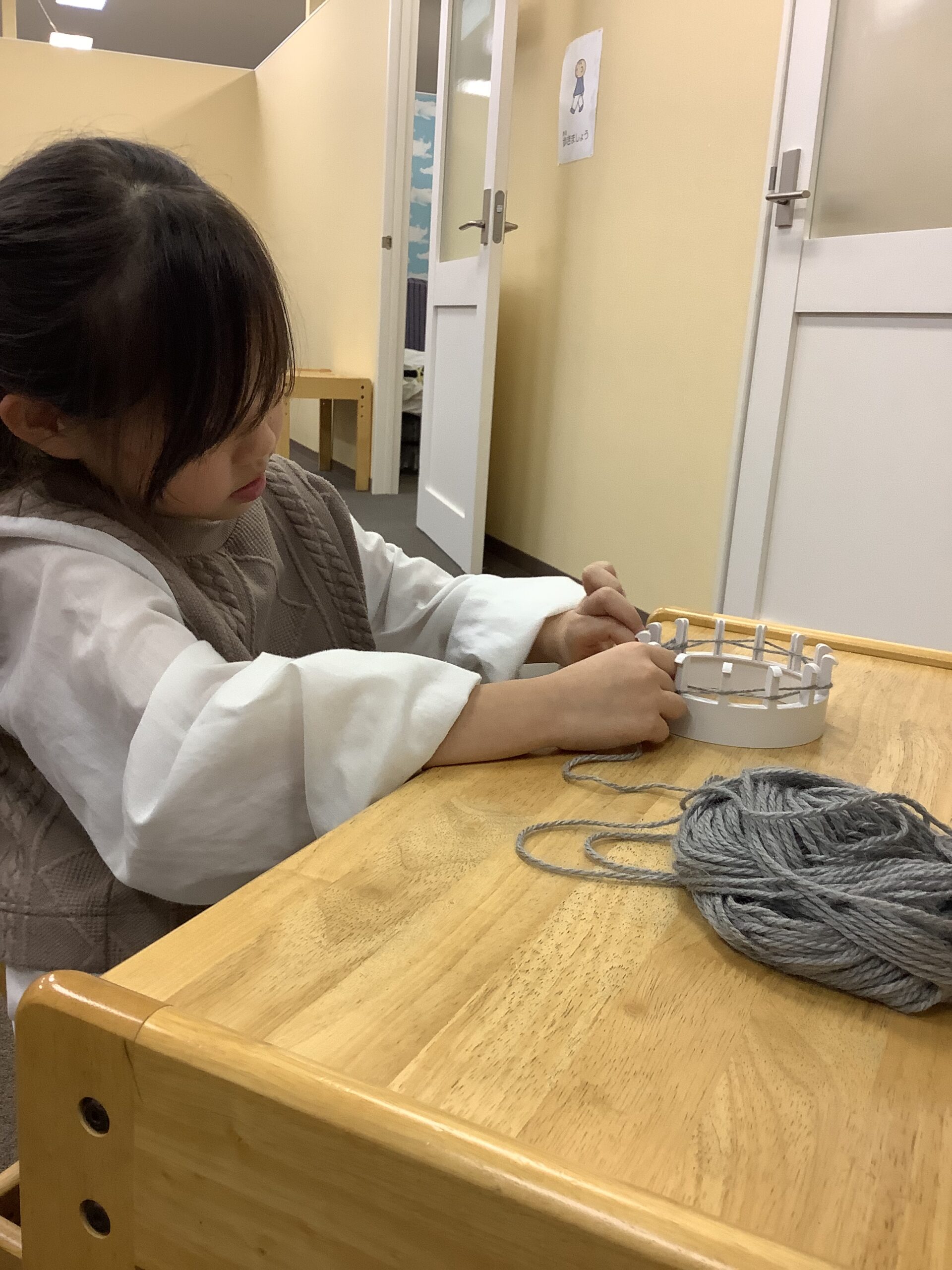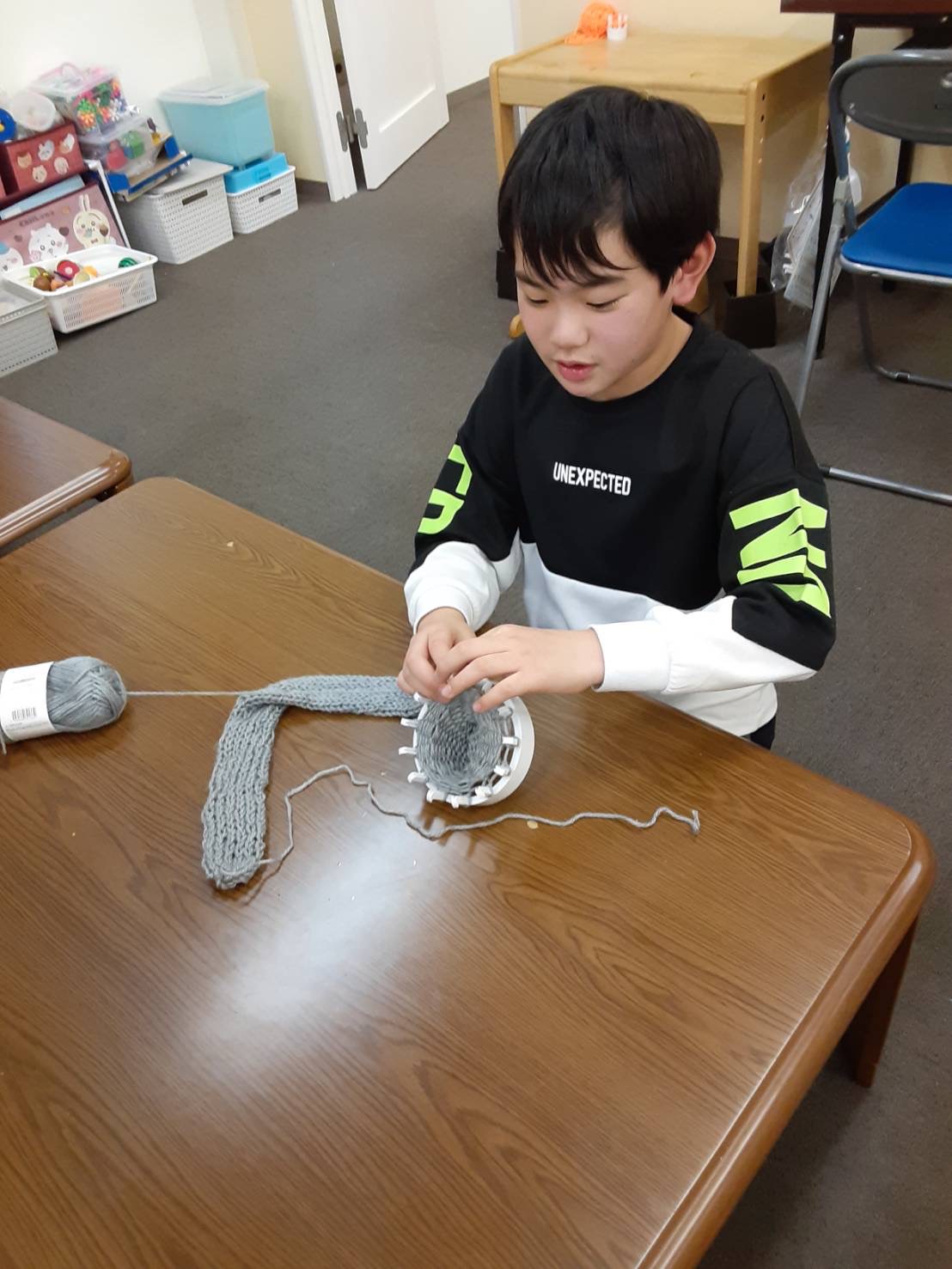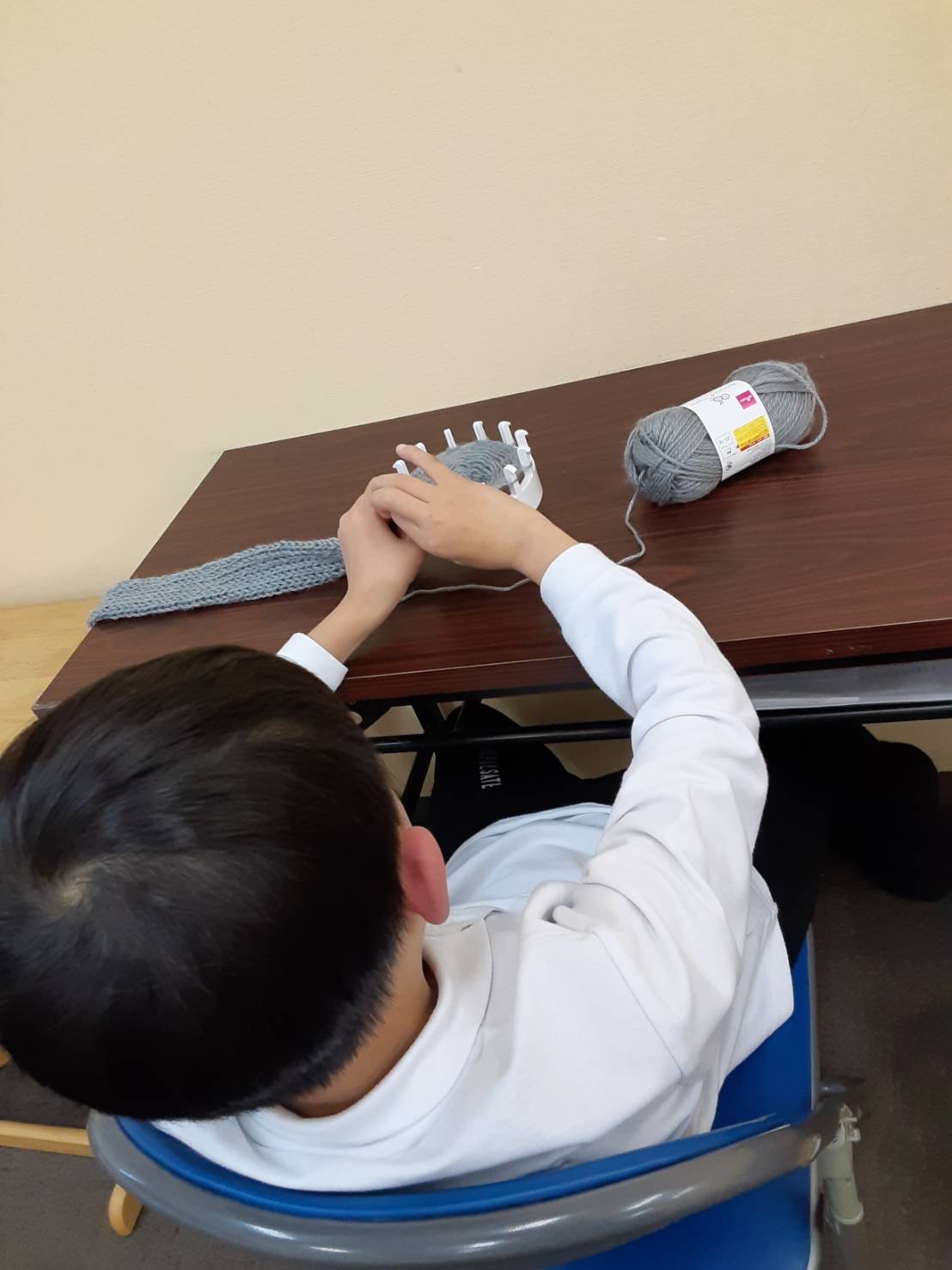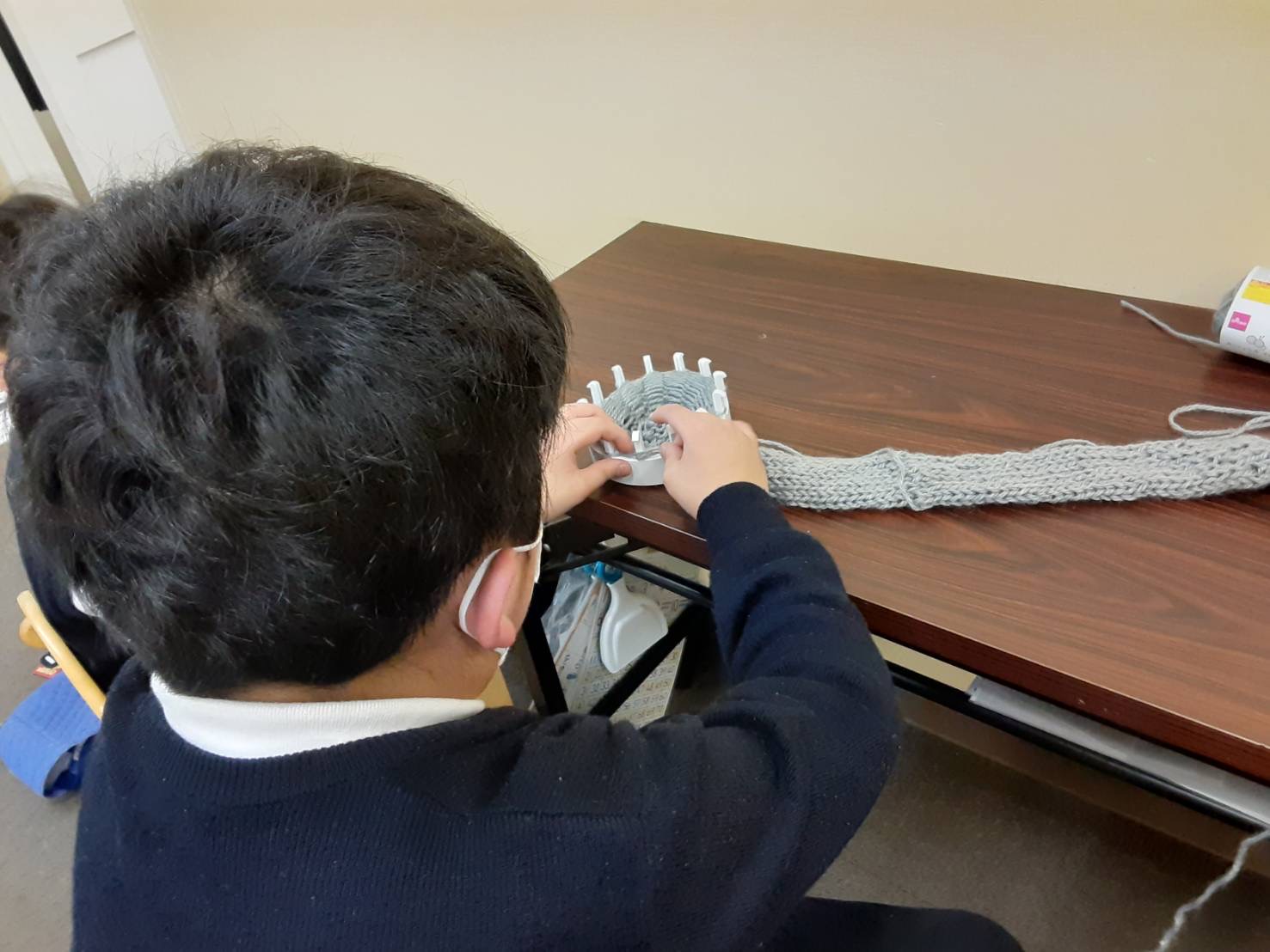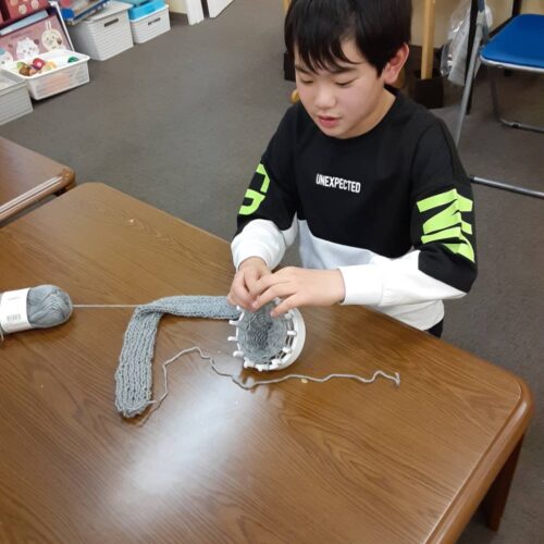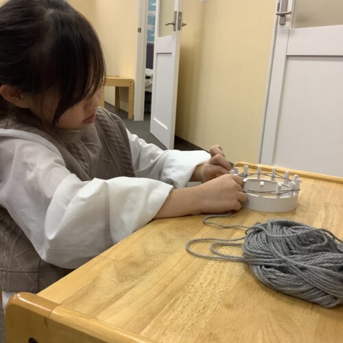 愛の家さいじょう館では、日々の支援の中で、子どもたちの創造力や自主性を大切にしながら、一人ひとりの成長をサポートしています。今回のマフラー作りも、手先を使うことで集中力や達成感を養う活動の一環として行われました。