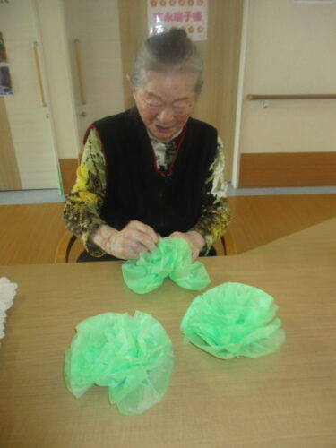さわやかグループホームいいくら 未分類 花紙で花づくり🌸🌸 2025-01-31 2025-01-31 こんにちは!1月最後の今日は、手先も器用な皆様に花を作って頂きました。こちらの方が教えていただいてます。