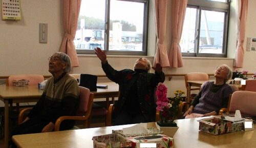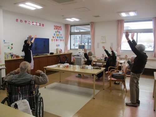 しっかり腕をあげたり、背筋を伸ばす運動を行っていただきます!