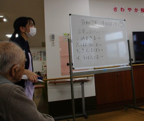 体操の後は、「脳トレ」です!今日のお題は「言葉の並び替え」です!