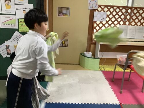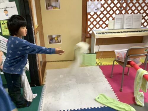 タオルがふわふわで、思うように飛んでいきませんが…楽しい!