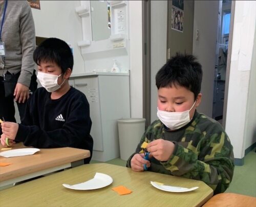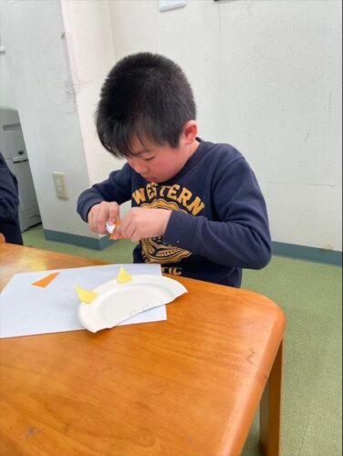 あかいわ館では2月の節分にちなんで、鬼のおめん👺を作りました❗️