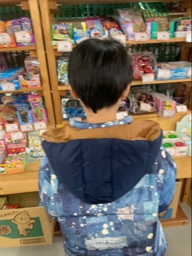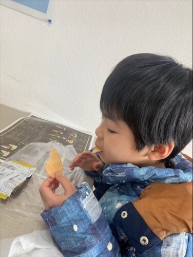お菓子を選び、レジや袋詰なども全部自分でして美味しそうに食べていました😋