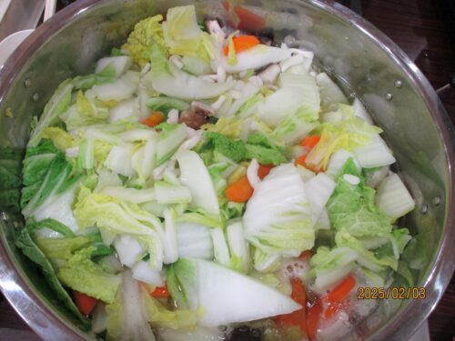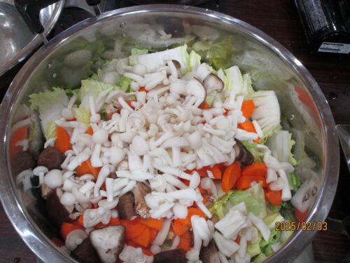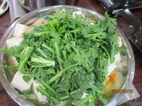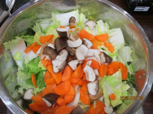 しいたけと人参と長ネギに春菊も入れて野菜たっぷりです