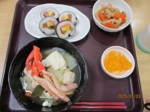 そして、今日は恵方巻もあってとっても贅沢なお昼ごはんです