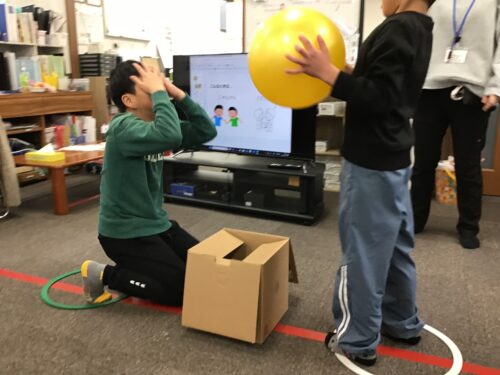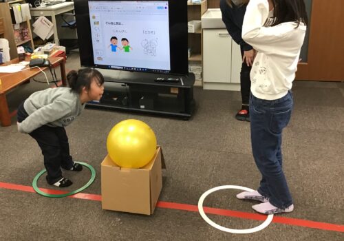 スタッフが「あたま」「かた」「ひざ」等、体の部位を言い、