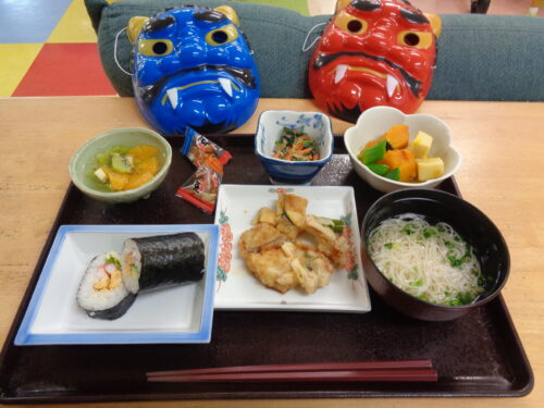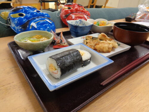 細かいことは置いといて、なかばる館2階はこの日に合わせて、お昼に恵方巻きを手作りしています。