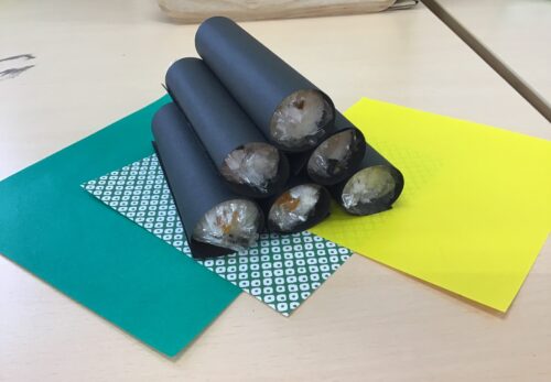 ストローに折り紙を巻く工程を取り入れ、指先を使って完成する制作となりましたよ。