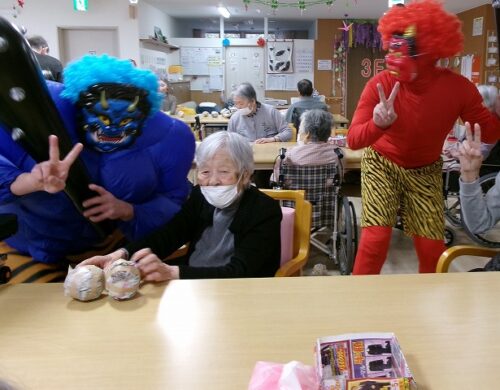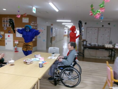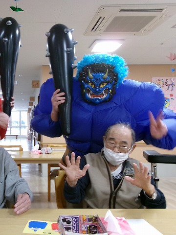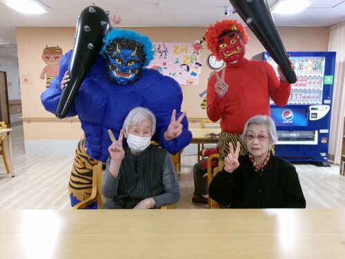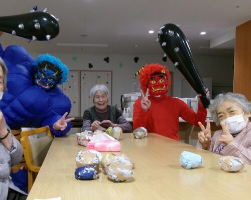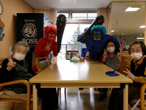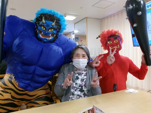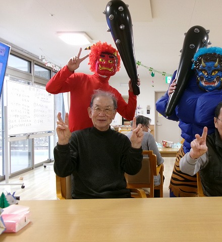 さわやか室蘭弐番館 3階 3日鬼退治②♪ 2025-02-04 2025-02-05 皆様こんにちは♪ 昨日の様子をお届けします 鬼と仲直り記念撮影です 鬼さんが大きく手を振って退散です 一年元気に過ごせます様に☆