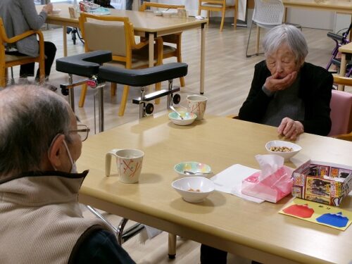 さわやか室蘭弐番館 3階 3日午後の様子♪ 2025-02-04 2025-02-03 皆様こんにちは♪ 昨日の午後の様子をお届けします 鬼退治の後はおやつです おやつはフルーツポンチです 節分なので福豆も提供させて頂きました ご馳走様でした☆