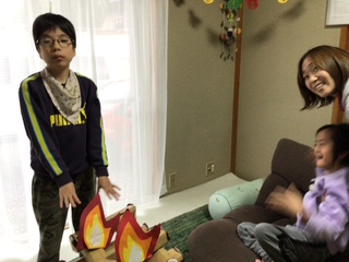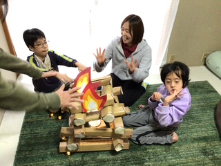 皆で協力して薪をくべてキャンプファイヤーだ🔥