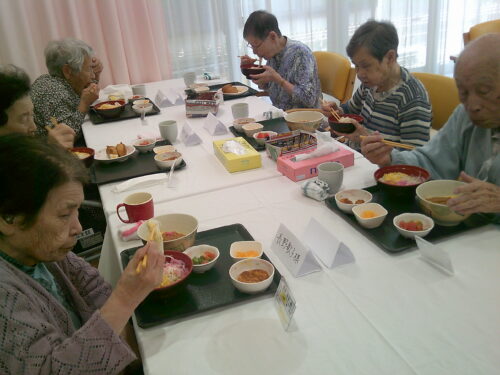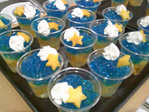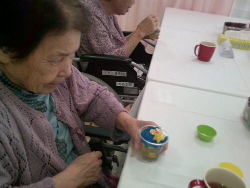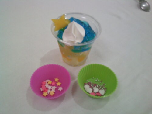 ゼリーに皆さん個人個人好きな物をトッピングしていました。