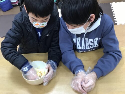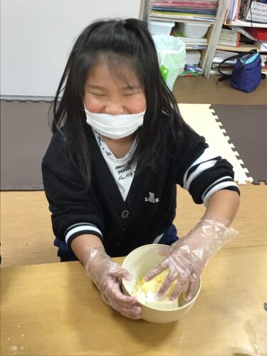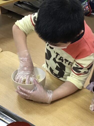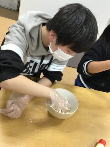 豆腐やチーズ、片栗粉を混ぜる感触を味わいながら