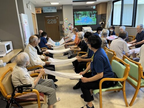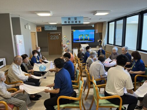 さわやかとよ田の里 ボールレク♫ 【さわやかとよ田の里】 2024-07-08 2024-07-08 😊皆様こんにちは😊 昨日は、ボールを使ったレクリエーションを行いました⚽ 全員でボールを回し、速さを競いました。 皆様、協力し合いながら和気あいあいと楽しまれていました😺 担当:山内