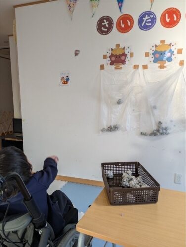 さいだいじ館でも児童・職員共に健康で過ごせるよう豆まきを行いました👹