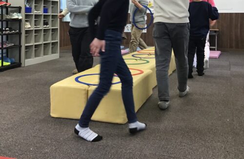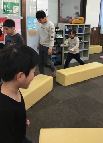 準備の為、マットを移動していると、進んで運んだり、輪を運んだりと
