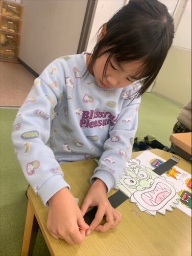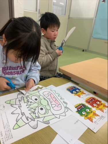 まずはぬりえでカラフルに鬼の顔をぬっていきます✏️