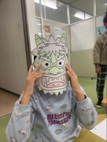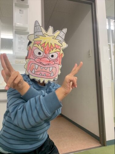 高学年と低学年に分かれて鬼のおめんを作りました‼️