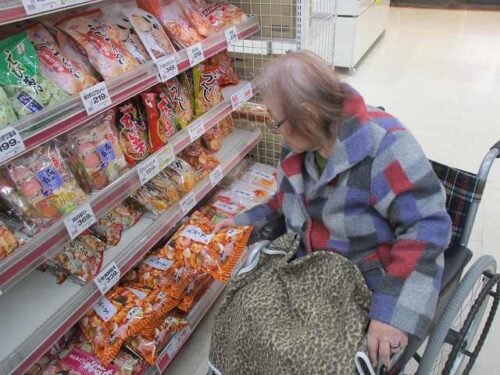 近くのスーパーで、お寿司やお菓子を見て回りました。🎶
